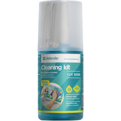 ეკრანის საწმენდი Cleaning kit for screens Defender CLN 30598 OptimaSeries,200ml+microfibre (20 х 20 cm)