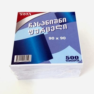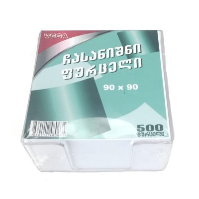 ჩასანიშნი ქაღალდი პლასტმასის ყუთით თეთრი 90*90 500ფ VEGA9090PL